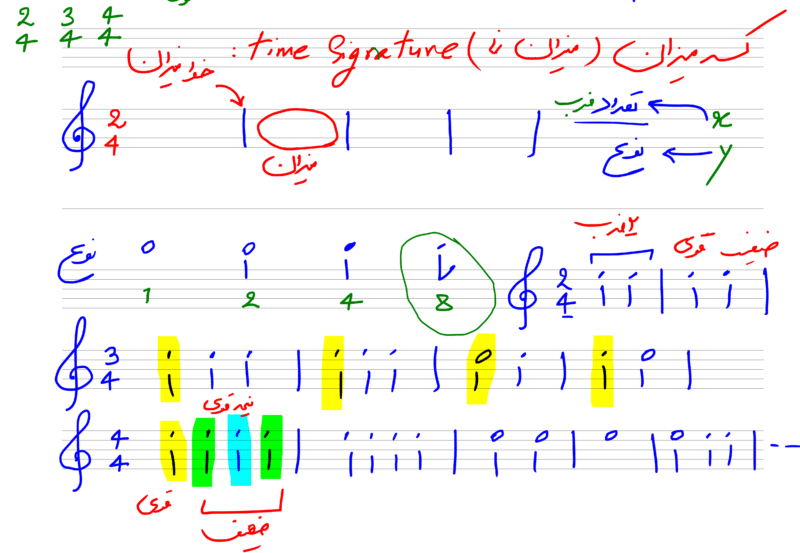 فرق بین میزان نماها رو بررسی میکنیم و ضربههای قوی ضعیف و نیمه قوی رو بررسی خواهیم کرد