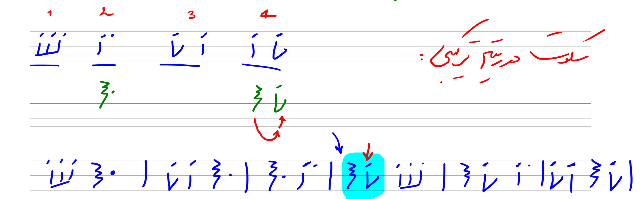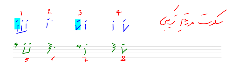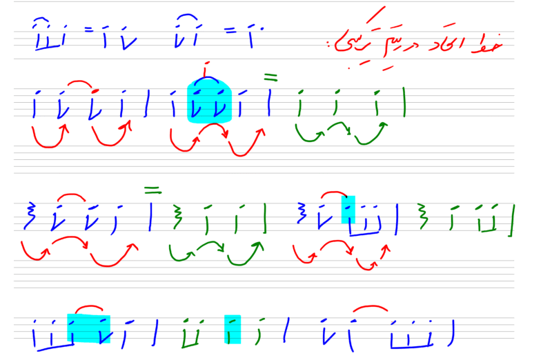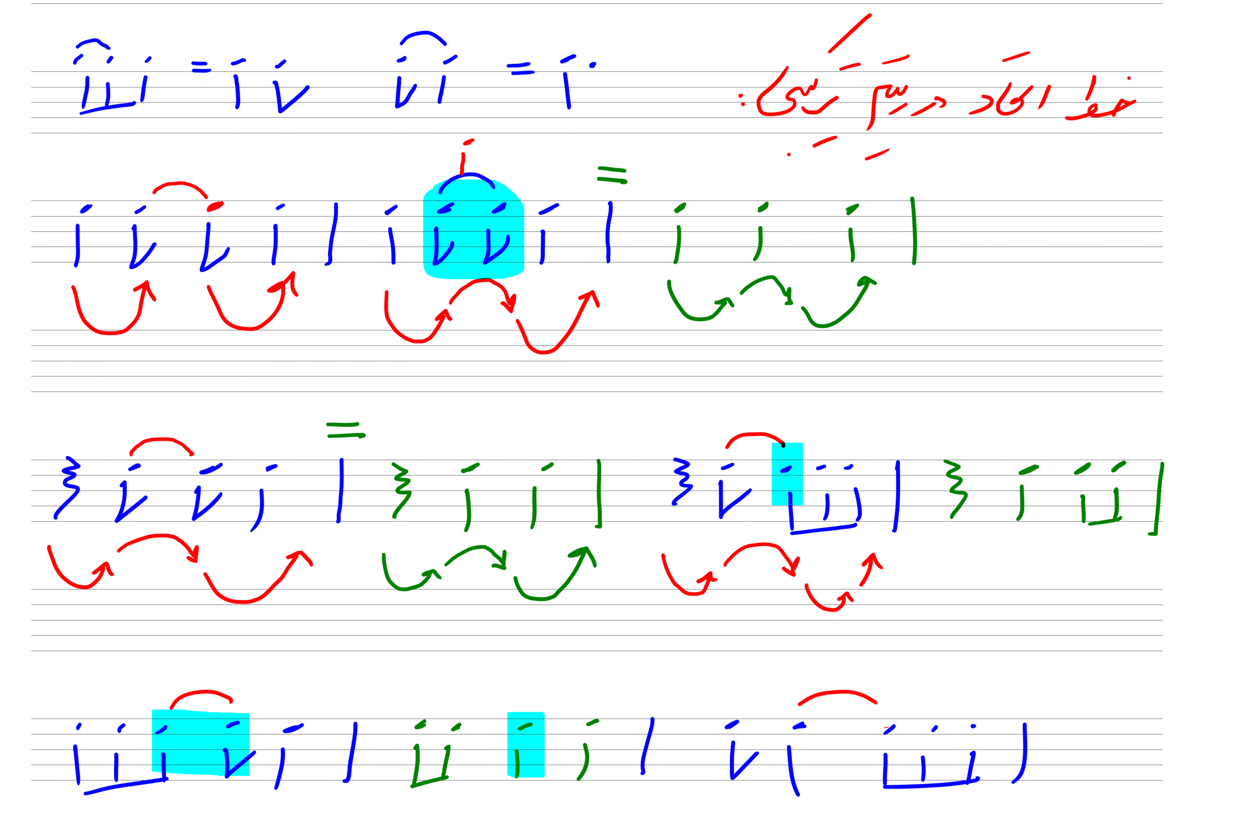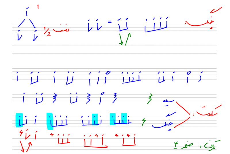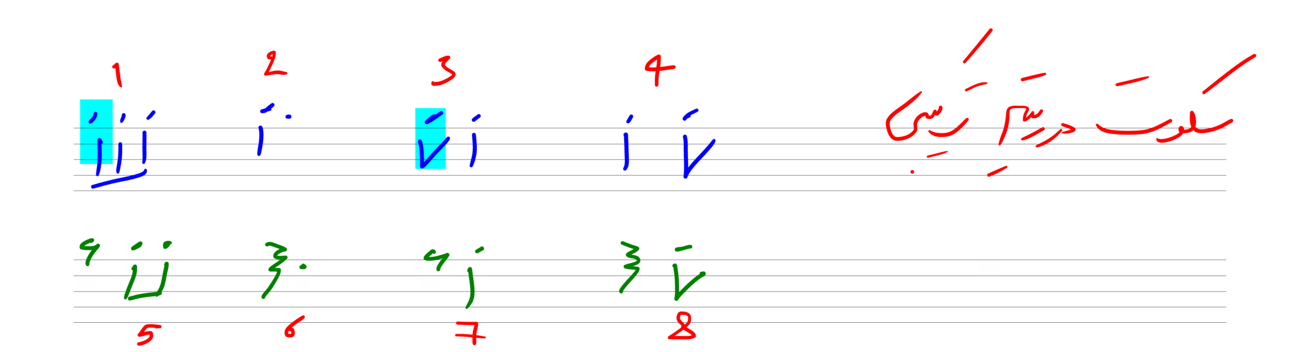 تمرین ریتم خوانی را میخونیم و ملودی تعیین شده رو تمرین میکنیم