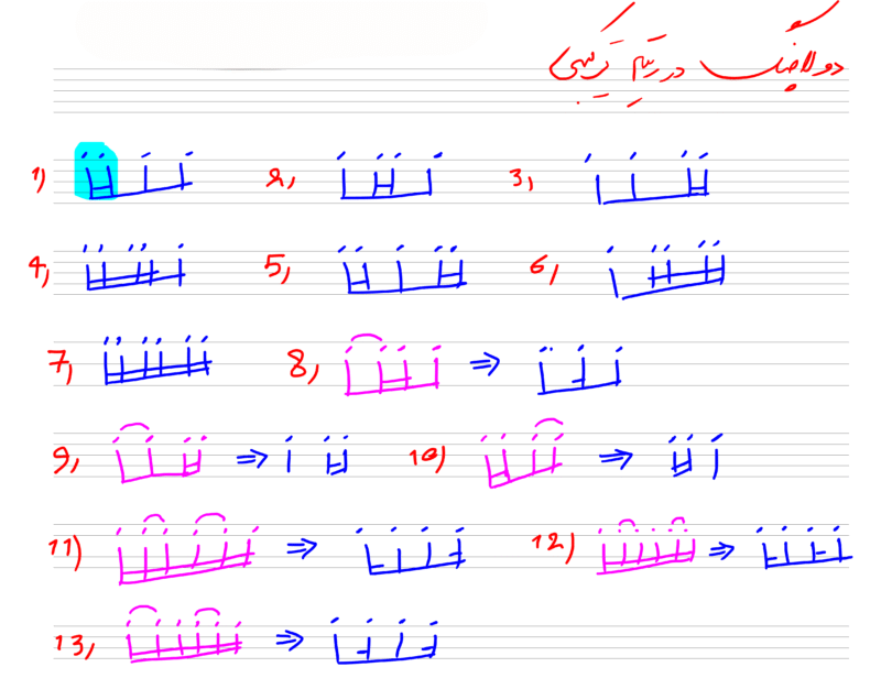 دولاچنگ در ریتم ترکیبی رو میخونیم که در کل ممکنه سیزده حالت برای ما به وجود بیاد