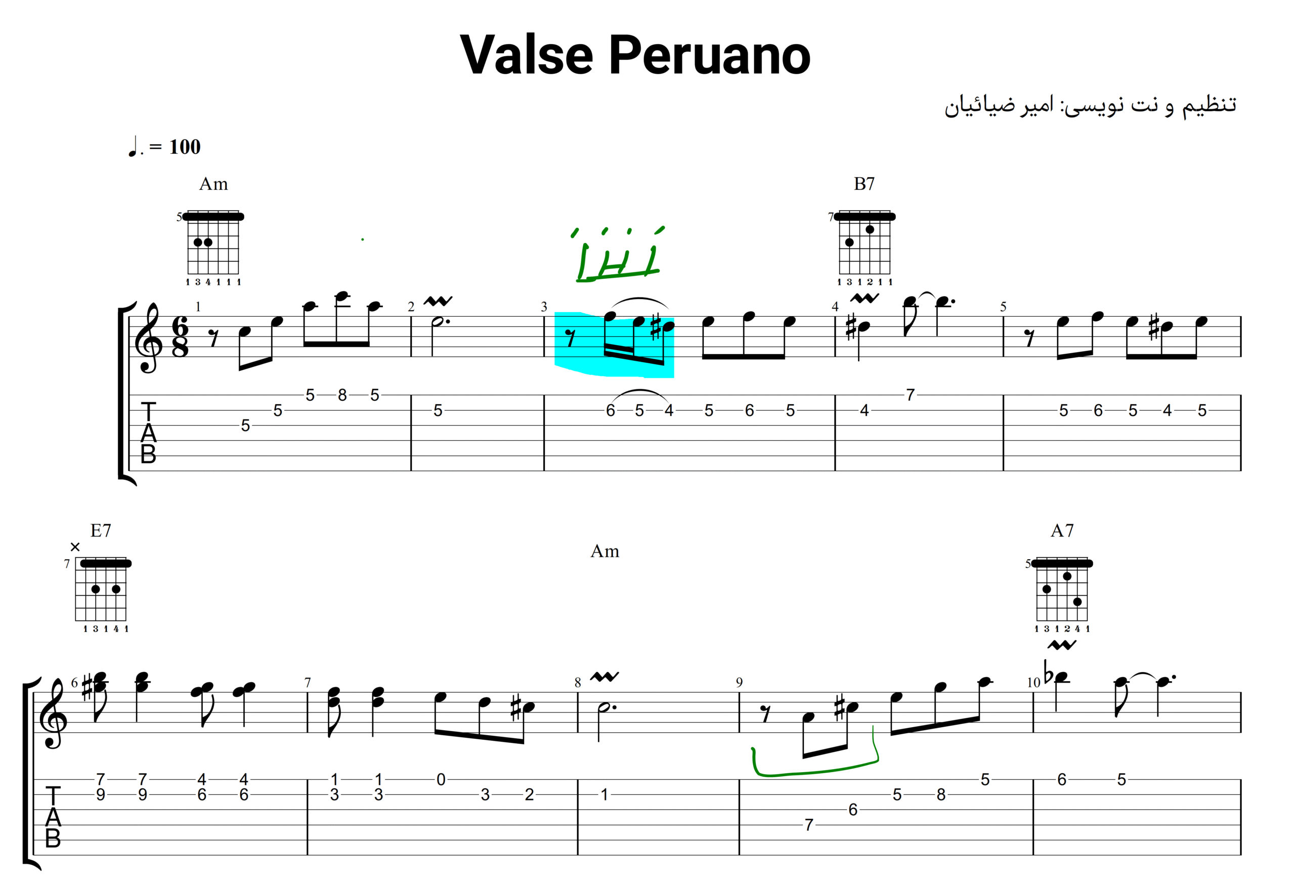 "قطعه سولو که نواختن آن در این جلسه آموزش داده شده"