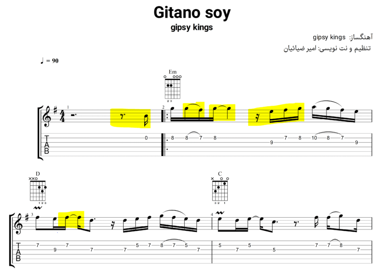 تمرین ریتم خوانی رو میخونیم و ملودی ها رو روی گیتار اجرا میکنیم